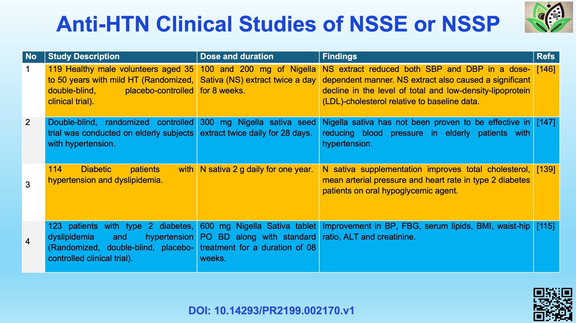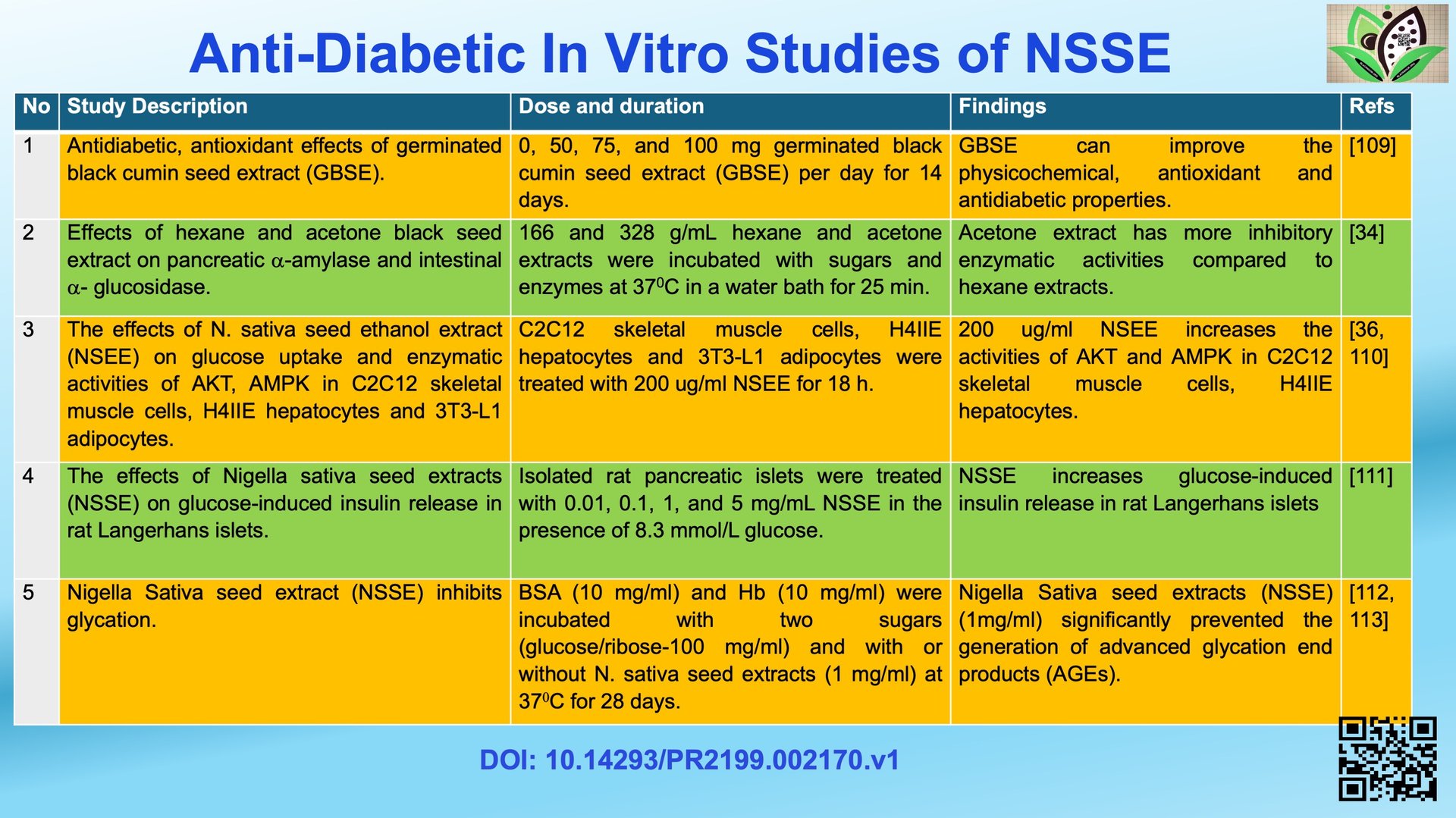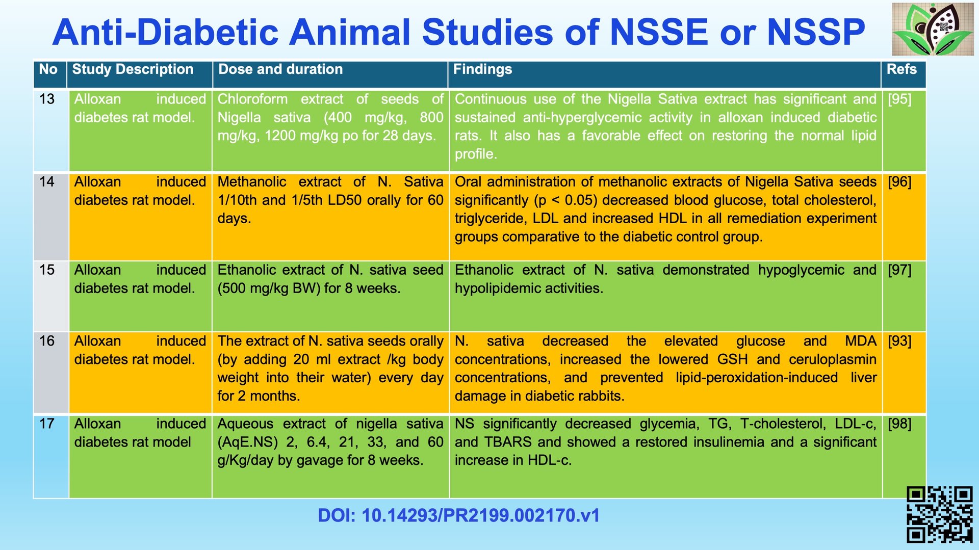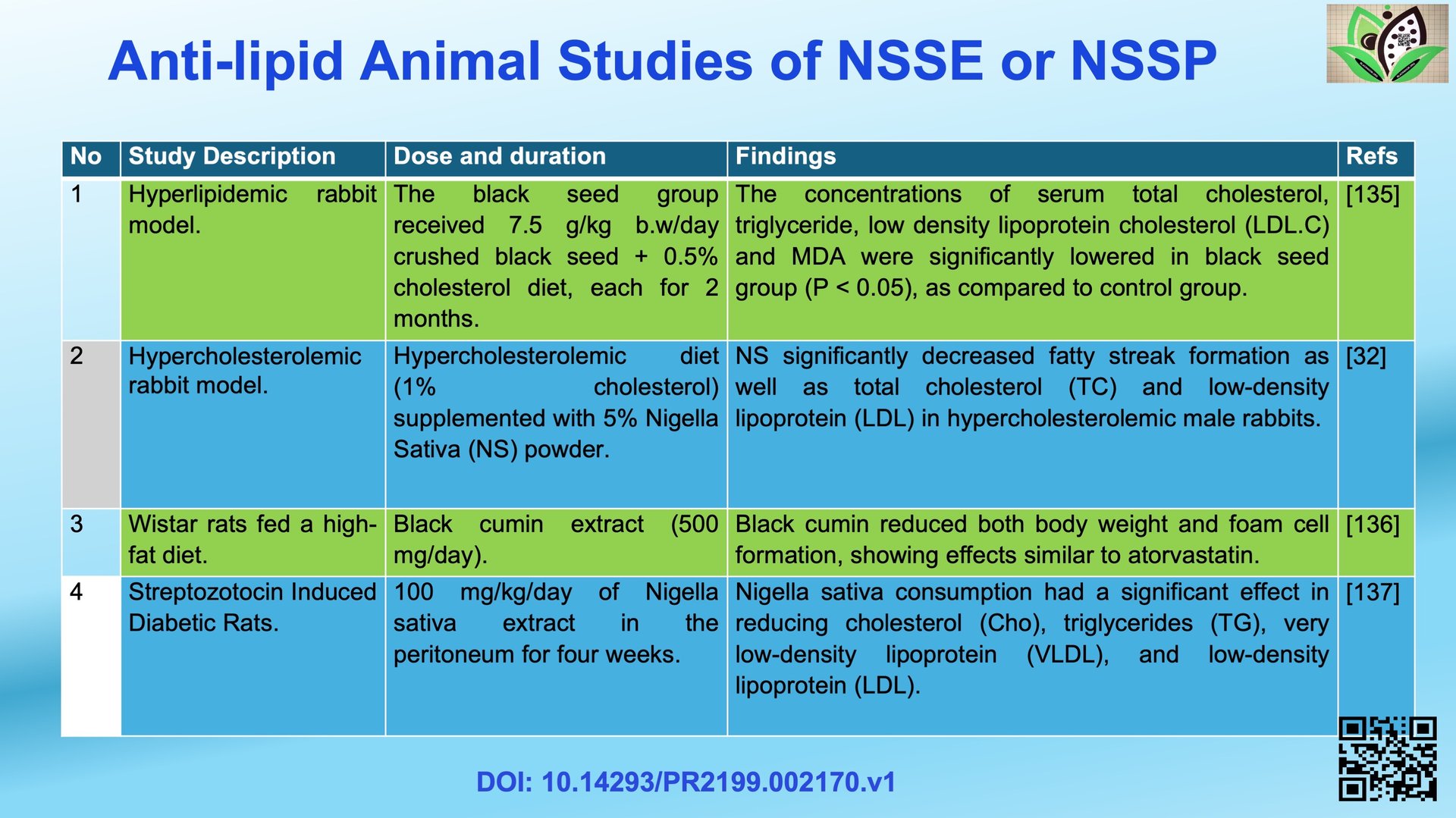 * The Roles of Nigella Sativa Seed Extract (NSSE) or Powder (NSSP) on Metabolic Syndrome (https://www.scienceopen.com/hosted-document?doi=10.14293/PR2199.002170.v1