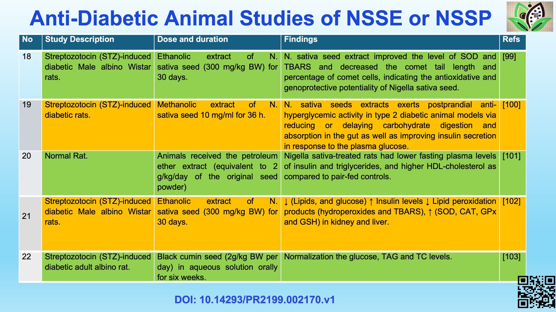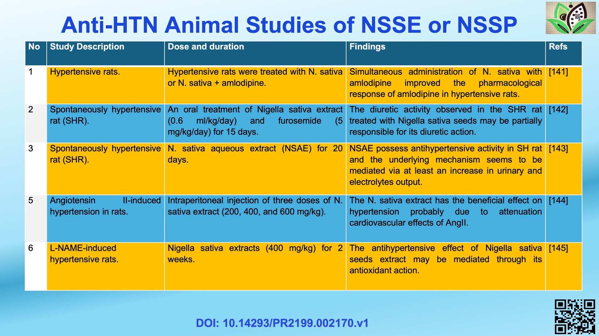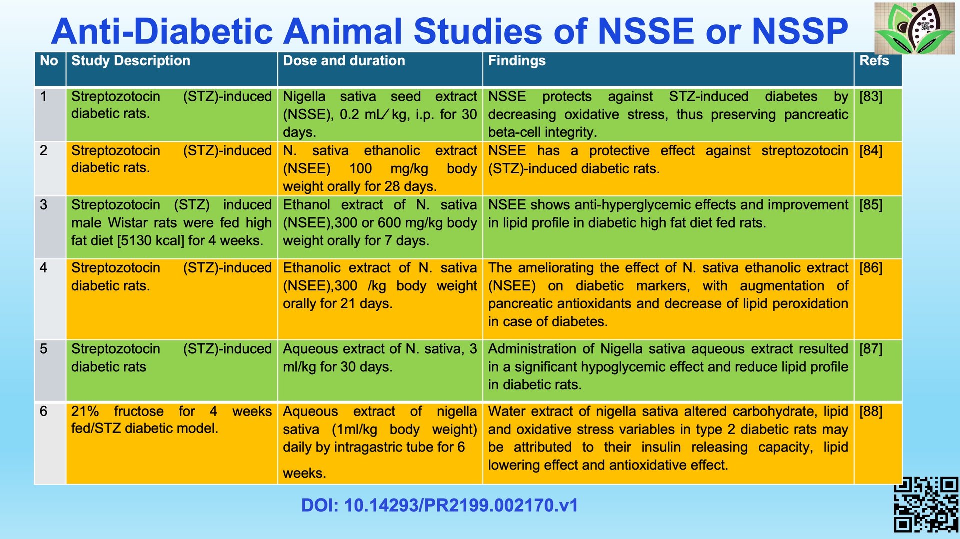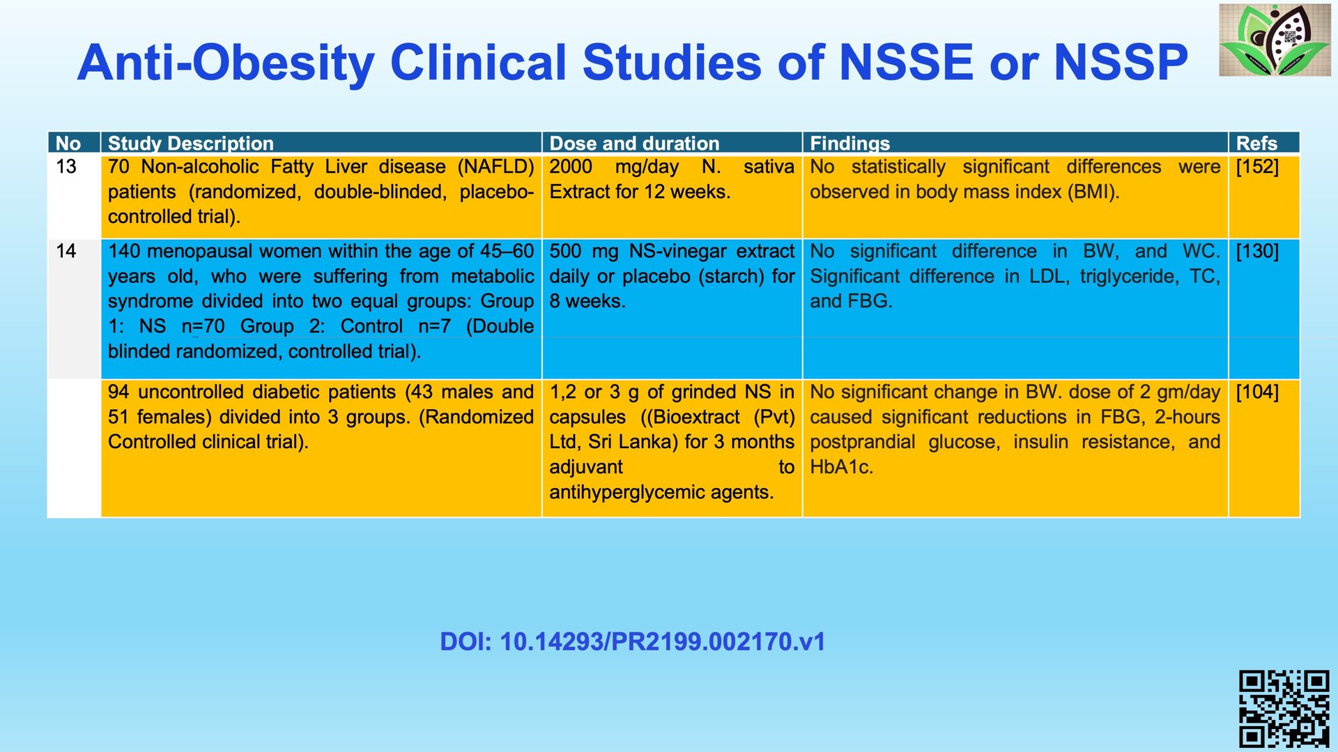 * The Roles of Nigella Sativa Seed Extract (NSSE) or Powder (NSSP) on Metabolic Syndrome (https://www.scienceopen.com/hosted-document?doi=10.14293/PR2199.002170.v1
