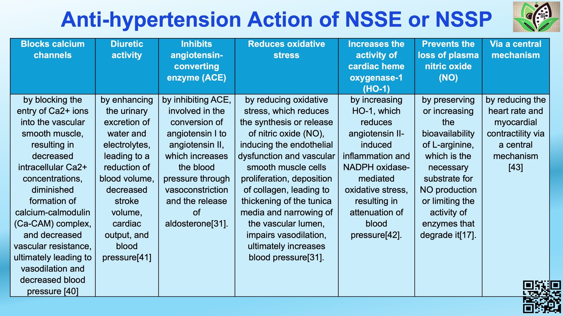 * The diverse bioactive constituents of Nigella sativa seed extract (NSSE) and seed powder (NSSP) have been reported to exert therapeutic effects against a wide range of human diseases through multiple mechanisms of action, including antioxidant, anti-inflammatory, immunostimulator, anti-microbial, anti-cancer, anti-dyslipidemic, antidiabetic, antihypertensive, and hepatoprotective activities.